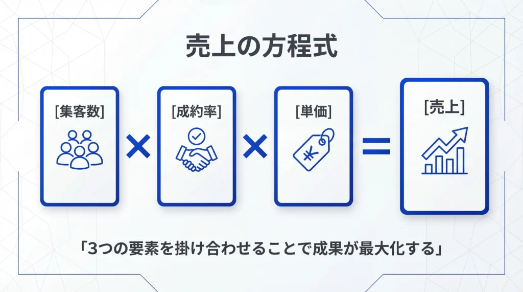 逆に、成約数が10件であれば、売上は10をかけた100万円になります。
