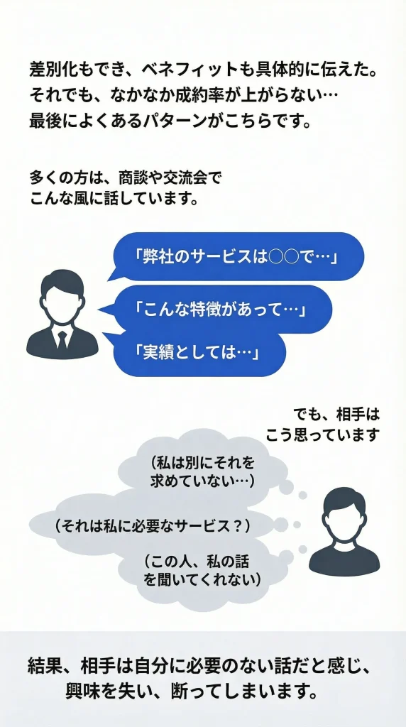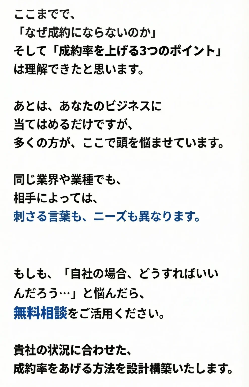 相手のニーズに沿ったサービス紹介にしたら、今までより成約率が2倍以上になりました。